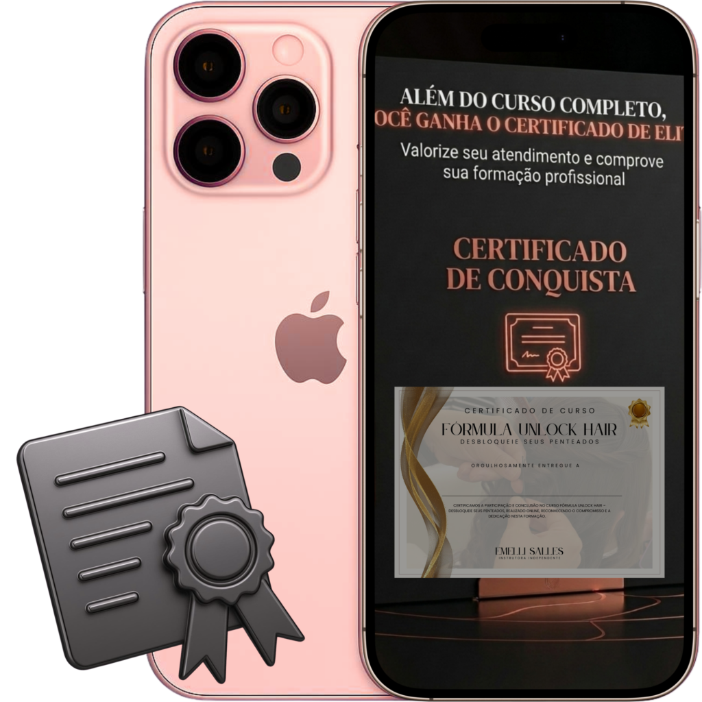“Sim! Ao concluir as aulas, você emitirá o seu Certificado de Elite do Método Unlock Hair, um selo de autoridade para você expor no seu espaço e valorizar o seu currículo perante as clientes.”